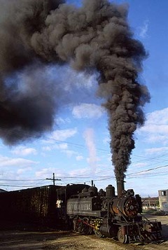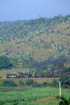 キューバでは珍しい石炭使用のタンク機関車。ジュースの屋台の前で突然止まりスタッフが休憩してしまった。