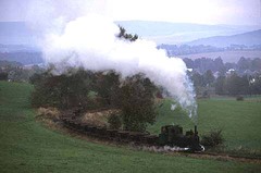 なだらかな丘陵を線路は縫って勾配をかせぐ。ムラジェヨフの町は次第に小さくなっていく。現役時代はたえずドラフト音が鳴り響いていたことだろう。