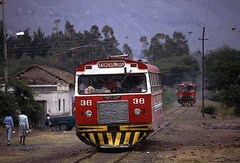 エクアドル名物レールバスは乗客の多さ次第で5〜6台の一斉に出発する。イバラーサン ロレンゾ(200キロ)間では隔日に出発する。途中には交換設備が無いので翌日戻るという運転設定である。
