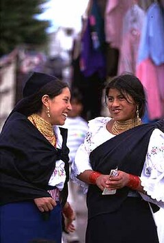 オタバルのバザール。インディオのほか沢山の小数民族も集まる。とくに土曜市は終日賑やかで買い物のかけひきが楽しい。私も彼女達売り子の笑顔に負けアクセサリーを買ってしまった。