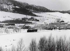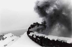 大雪のため国道からの俯瞰を諦める。線路を歩くのも困難、撮影ポイントを探しているうちやって来てしまった。