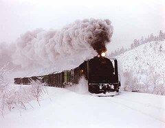 今日はC58が入線する予定だったがやはり96だった。後追いで狙った96の貨物列車はローカル色をみさせる。