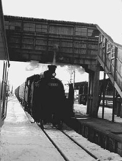 駅進入を窓から撮ってみた。こんな跨線橋も今では懐かしい。