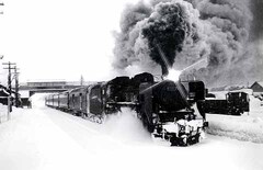 午後の名寄名物C55同士の交換風景である。マニアは人気のある30号機に反対側ホーム47号機は閑散。翌年、47号機が廃車され代りにC57が入線。同じ交換風景でも悪役になってしまったC57には誰一人カメラを向けない。