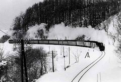 誰もが訪れるトンネル上の定番撮影地。朝の小樽行き普通列車とこの「大雪」崩れの普通列車は日課だった。蒸機が引く夢のような急行編成は貴重で人気があった。