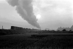 C61を見に機関区まで出掛けたがすでに出発したあとだった。なんのためにここまで来たのかと悔やむ。ちょうど貨物が出発するところだった。