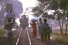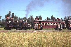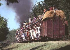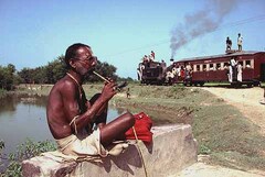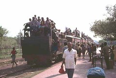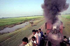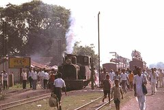 私もインド側の終点まで体験乗車した。車内は満席、スピードも鈍いため通風もなく蒸し暑い。バック運転のためキャブ上は煤煙に悩まされることもない。屋根づたいに物売りが廻って来るのには驚いた。