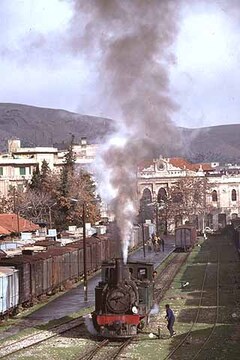 ダマスカスヘジャス駅で入れ替え運転をする754号機(2-6-0T SML 1894年)つかの間の晴れ間、老兵はこれから山岳鉄路に挑む。
