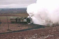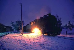 El Homeを過ぎるあたりから雨から雪に変わった。重油だきの754の煙は真黒だが白い蒸気も交ざり理想的な煙である。